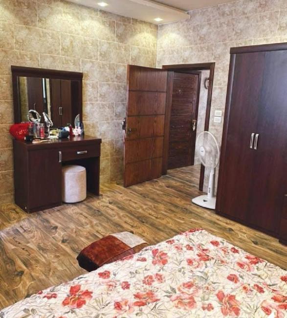 مساحة 130م ، اكساء سوبر ديلوكس ، غرفتين وصالون ، طابق 4 ، يوجد نت وطاقة شمسية