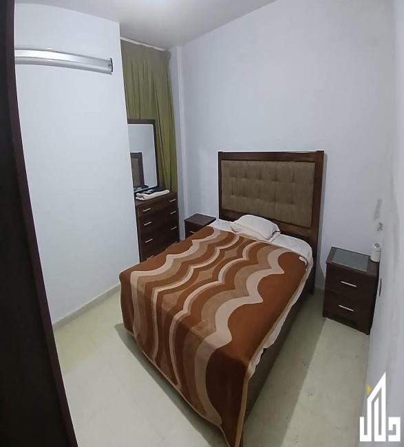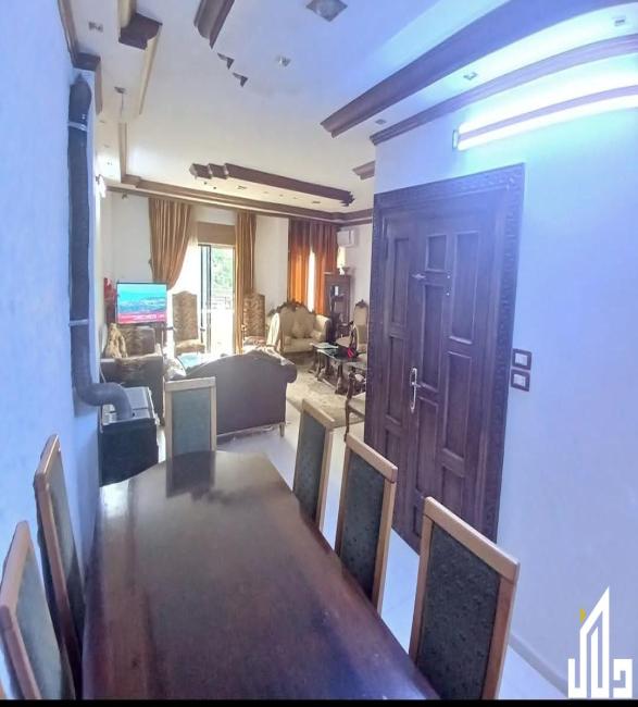 مع الفرش ، المساحة 135م ، الطابق 2 ، صالون مع غرفة قعدة وركن للسفرة وغرفتين نوم ومطبخ وحمامين