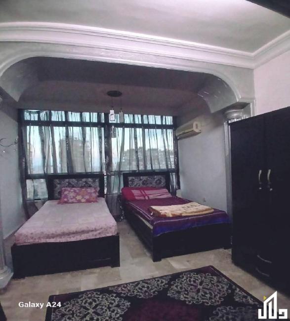 التوزيع غرفة نوم وصالون ، مساحة 80م ، طابق 8 ، الاكساء فرش جيد جدا ، مصعد طاقة شمسية ، ناطور ، الاجار سنوي