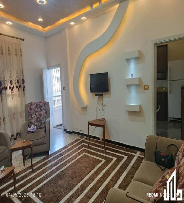 للبيع شقة الرمل الشمالي ، مع الفرش بالقرب من المدارس ، طابق اول فني ، مؤلفة من غرفة وصالون ومنافع ، مساحة 70م