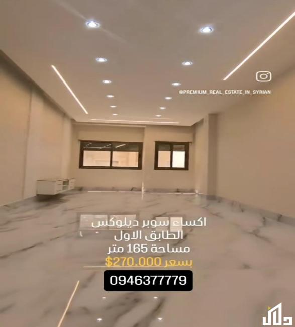 مساحة 165م ، طابق 1 ، 3 غرف نوم وصالون ، اكساء سوبر ملكي ، طاقة للمصعد ، ناطو للبناء ، باركينج