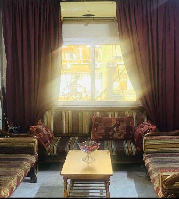 غرفتين نوم وصالون ، نت ارضي ، مساحة 90 متر ، الاكساء وفرش جيد