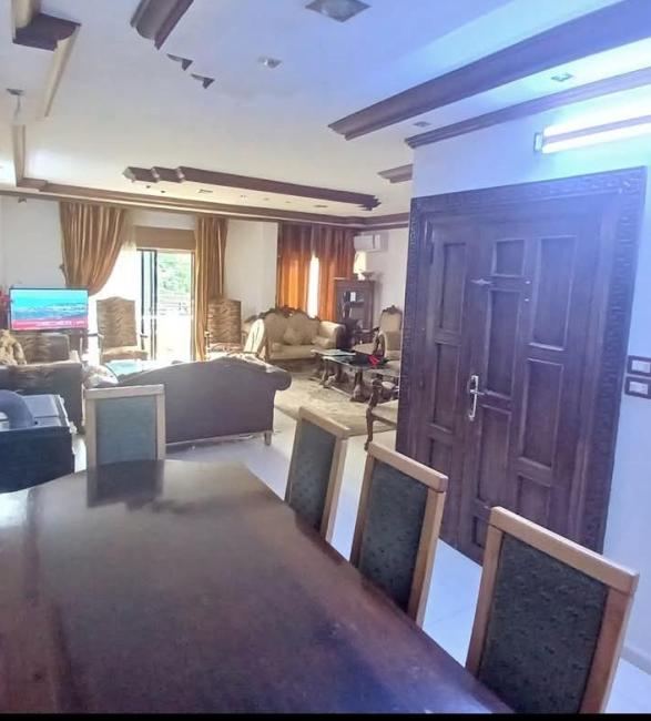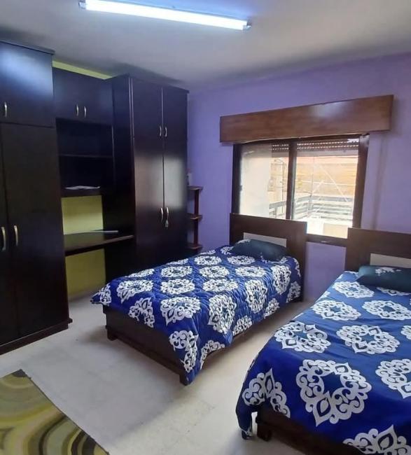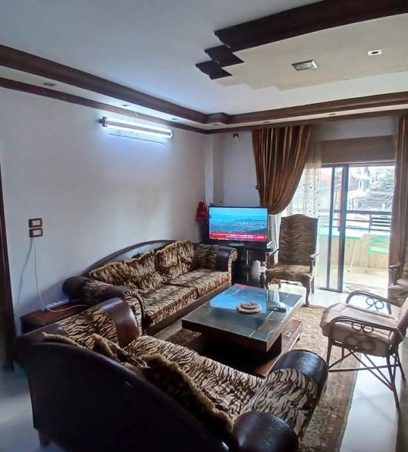 مع الفرش ، المساحة 135م ، الطابق 2 ، صالون مع غرفة قعدة وركن للسفرة وغرفتين نوم ومطبخ وحمامين