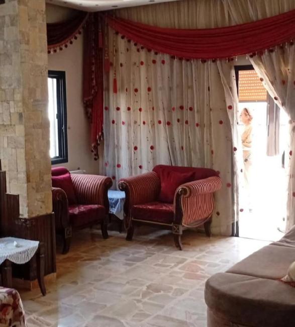 غرفتين نوم وصالون ، المساحة 120م ، الطابق الرابع ، يوجد مصعد عند توفر الكهرباء