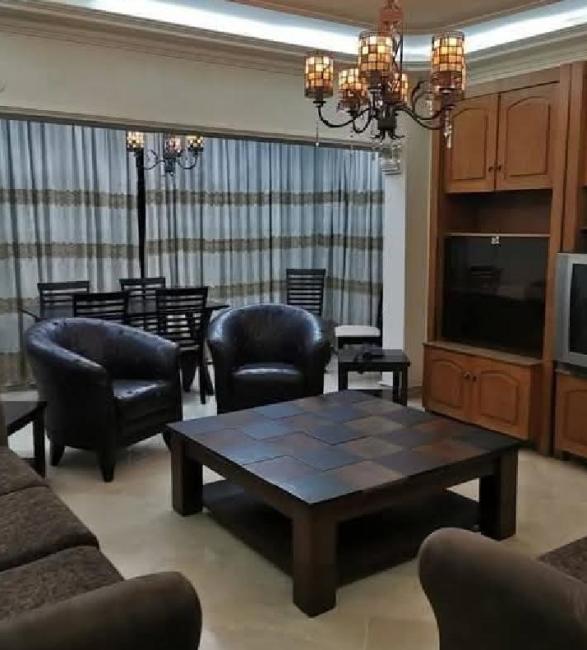 مفروش ومخدم بالهاتف والنت وتدفئة مساحة 130م غرفتين نوم وصالون