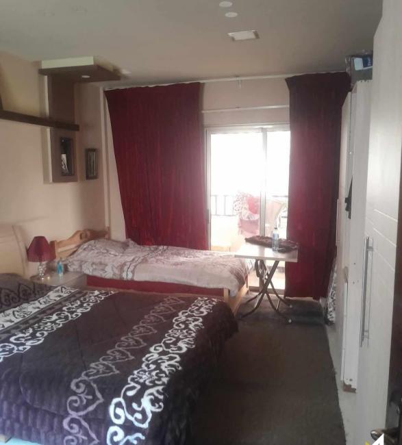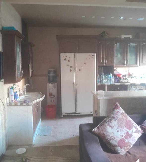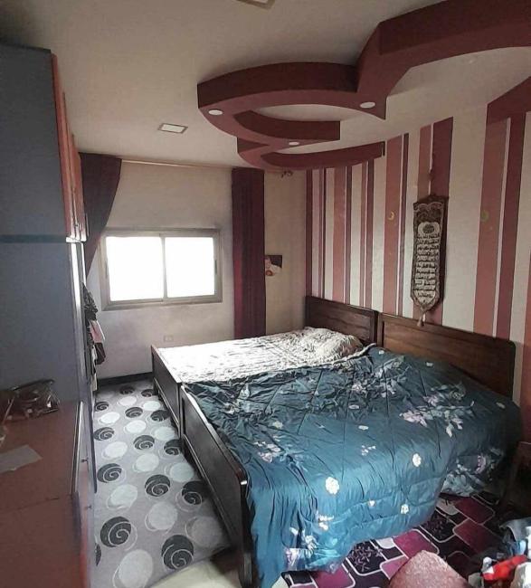 الشقة مع السطح 170م ، طابق تاني كل طابق شقة ، التوزيع غرفتين نوم وغرفة قعدة مع مطبخ اميركي ، صالون كبير مع شمنيه