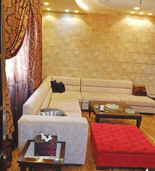 مساحة 130م ، اكساء سوبر ديلوكس ، غرفتين وصالون ، طابق 4 ، يوجد نت وطاقة شمسية