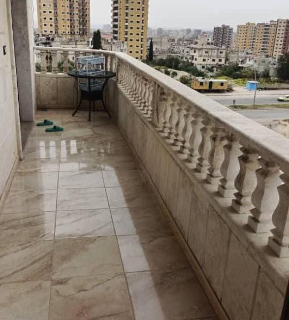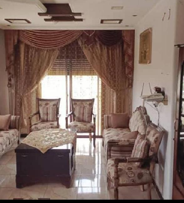 مؤلف من غرفتين نوم وصالون ، مساحة 120م ، طابق رابع فني ، اتحله غريي ، اكساء سوبر ديلوكس ، طابو اسهم مالية