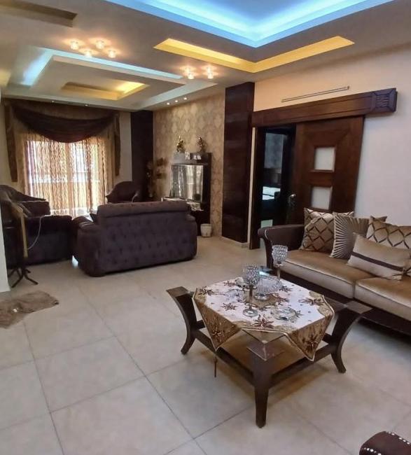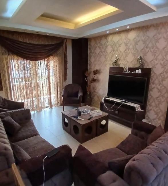 المساحة 145م ، طابق 3 مؤلف من صالون مع قعدة وغرفتين نوم ومطبخ وحمامين وبلكونين الاتجاه قبلي شمالي ، طابو نظامي