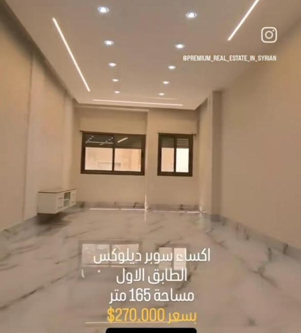مساحة 165م ، طابق 1 ، 3 غرف نوم وصالون ، اكساء سوبر ملكي ، طاقة للمصعد ، ناطو للبناء ، باركينج
